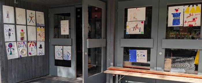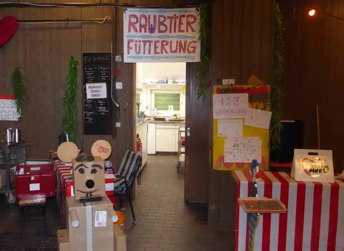 Unsere Artisten werben am Einlass mit ihren Plakaten: